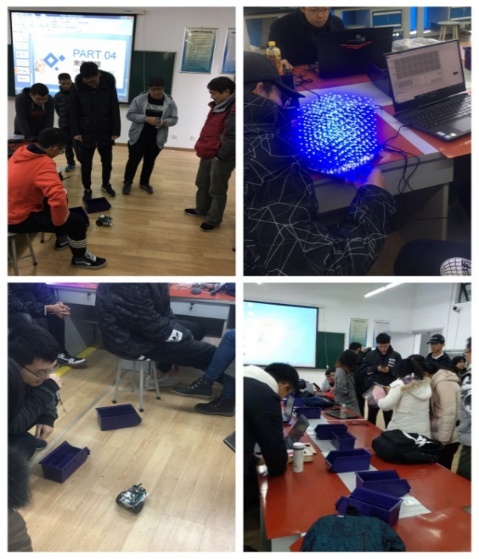 (4)2021年,E2创智天地继续完善完成创新实践基地项目平台建设和指导学生开展线上线上创新实践教育活动,在前期项目平台硬件建设的基础上,E2创智天地联合学院对应学科专业进行配套实践教育培养课程的建设,进一步完善创新实践教育教学平台建设。1)E2创智天地与物流工程学院电气专业联合建设《港航智慧物联网应用设计》创新实践培养方案,着重培养学生在智慧物联网、智能传感等方向创新应用开发和实践动手的能力。2)E2创智天地与物流工程学院联合建设智能机器人创新实践培养方案,着重培养学生在智能机器人、智能物流、智能控制等方向创新应用开发和实践动手的能力。