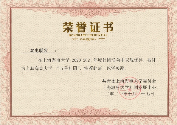 2021年10月,E2创智天地平台学生社团“双电联盟”被评为上海海事大学“五星社团”。