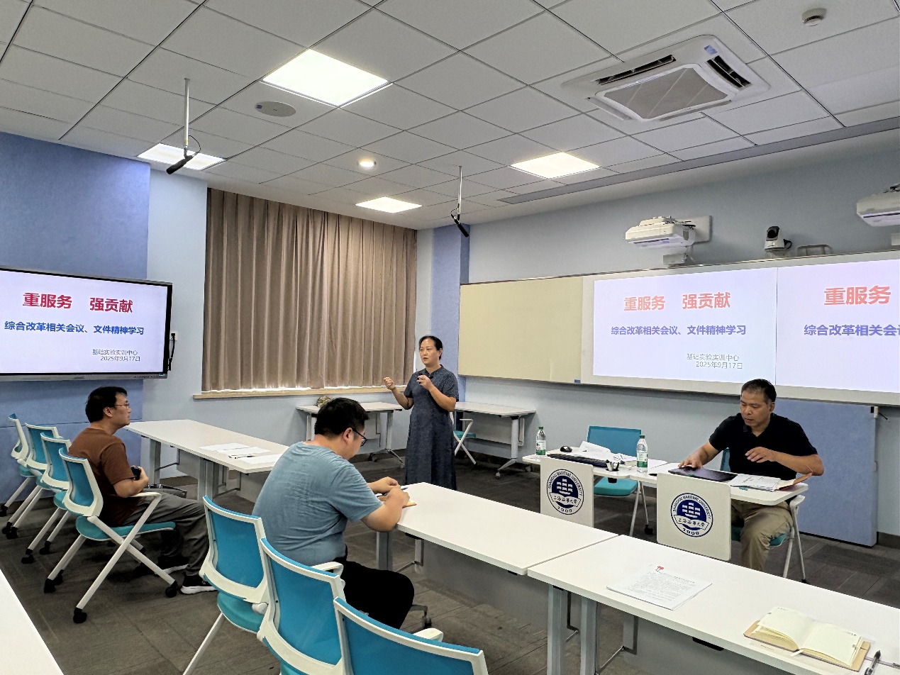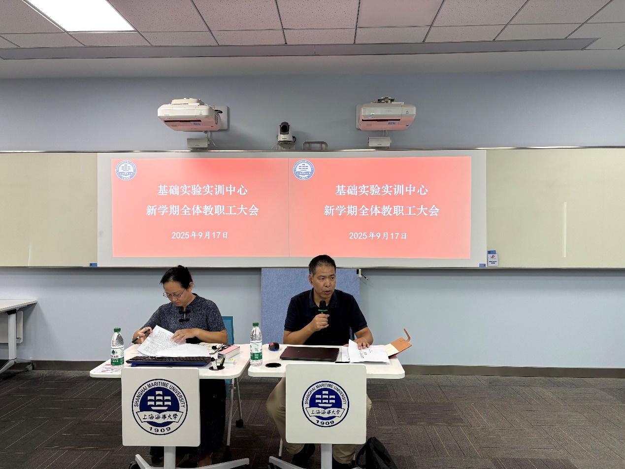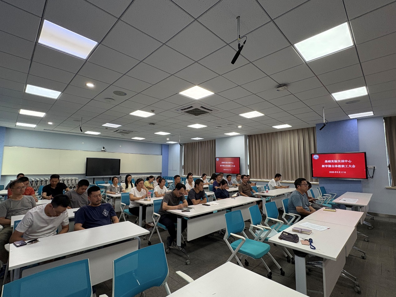 2025年9月17日下午,基础实验实训中心在3C403召开全体教职工大会,会议由唐建新书记主持,部门全体教职工参加会议。会议围绕四项核心议题系统部署工作,为新学期高质量发展谋篇布局。