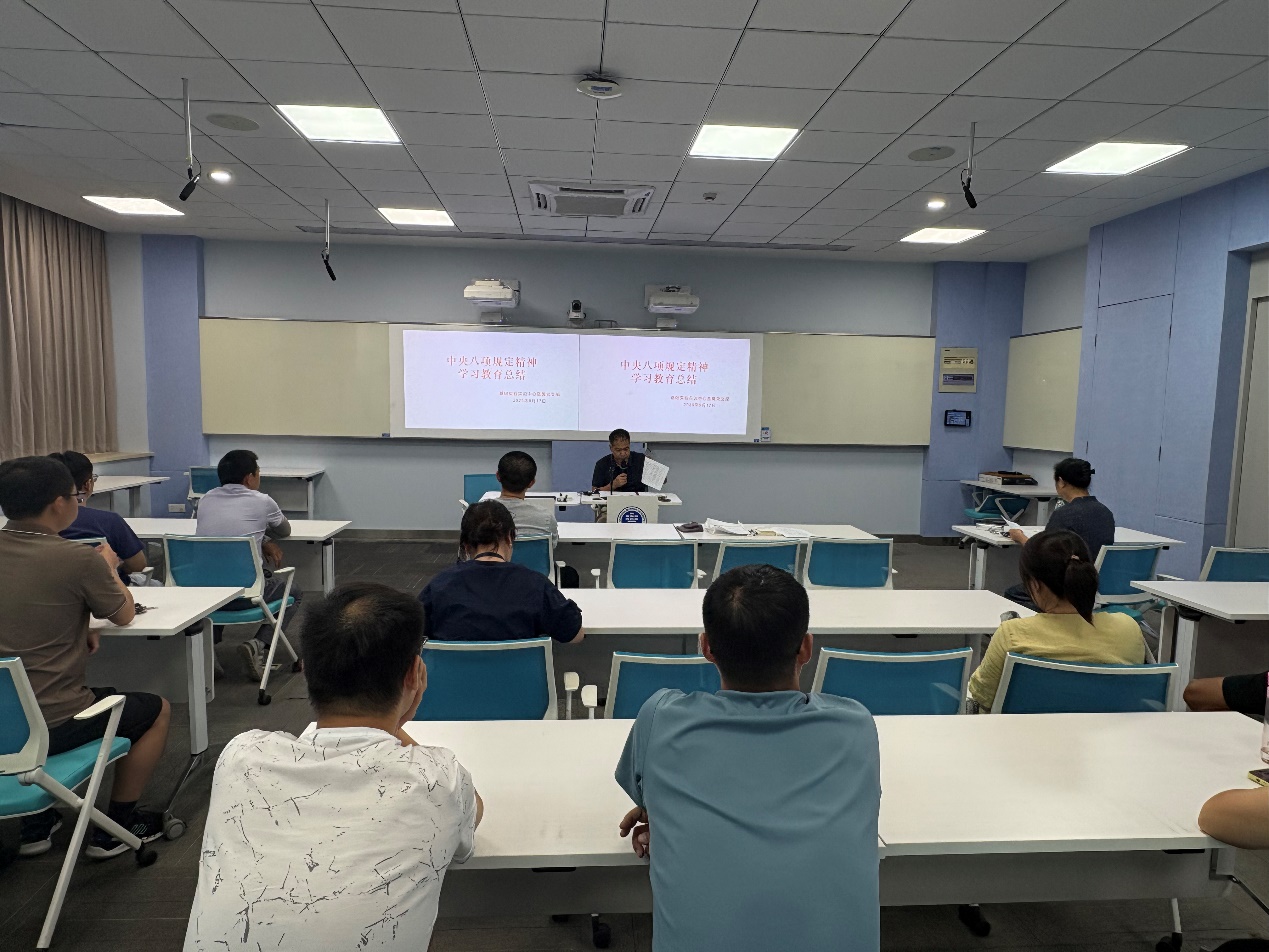 会后,唐建新书记向全体党员通报了中心直属党支部关于开展中央八项规定精神学习教育的总结情况。介绍了前期学习教育的组织过程、主要做法和工作成效,通过专题学习、主题党日、案例教育、研讨交流、专题党课、参观调研等方式开展了富有成效的学习教育活动,唐书记强调要建立长效的学习机制,从政治高度上认清作风建设的重要性,持续巩固拓展学习教育成果,严守纪律规矩意识,营造风清气正、干事创业的政治生态和良好育人环境。