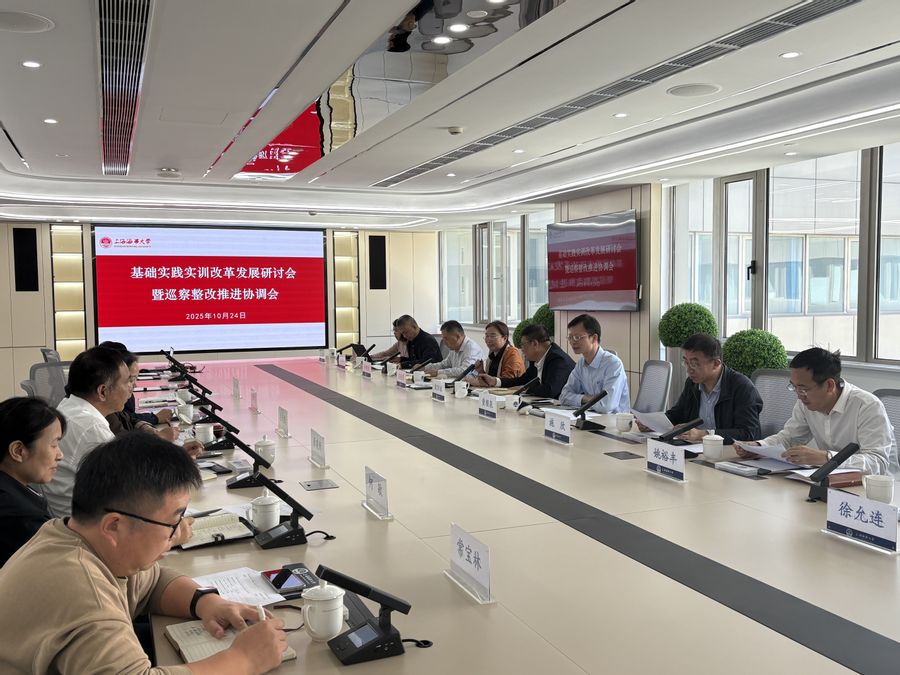 为扎实推动巡察反馈意见的整改落实,谋划基础实践实训工作的高质量发展,2025年10月24日上午,基础实验实训中心组织召开基础实践实训改革发展研讨会暨巡察整改工作推进会。副校长施欣亲自主持会议并作工作指示,机关相关职能处室负责人、相关学院院长、教学副院长以及基础实验实训中心全体班子成员共同参会。